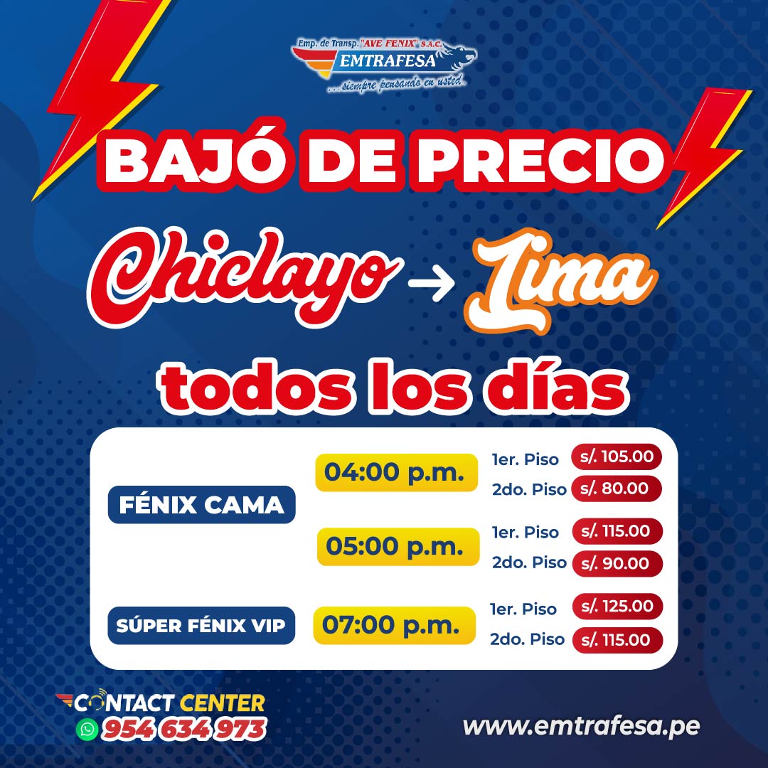 Elige el itinerario para el viaje de IDA (TRUJILLO A CHICLAYO)